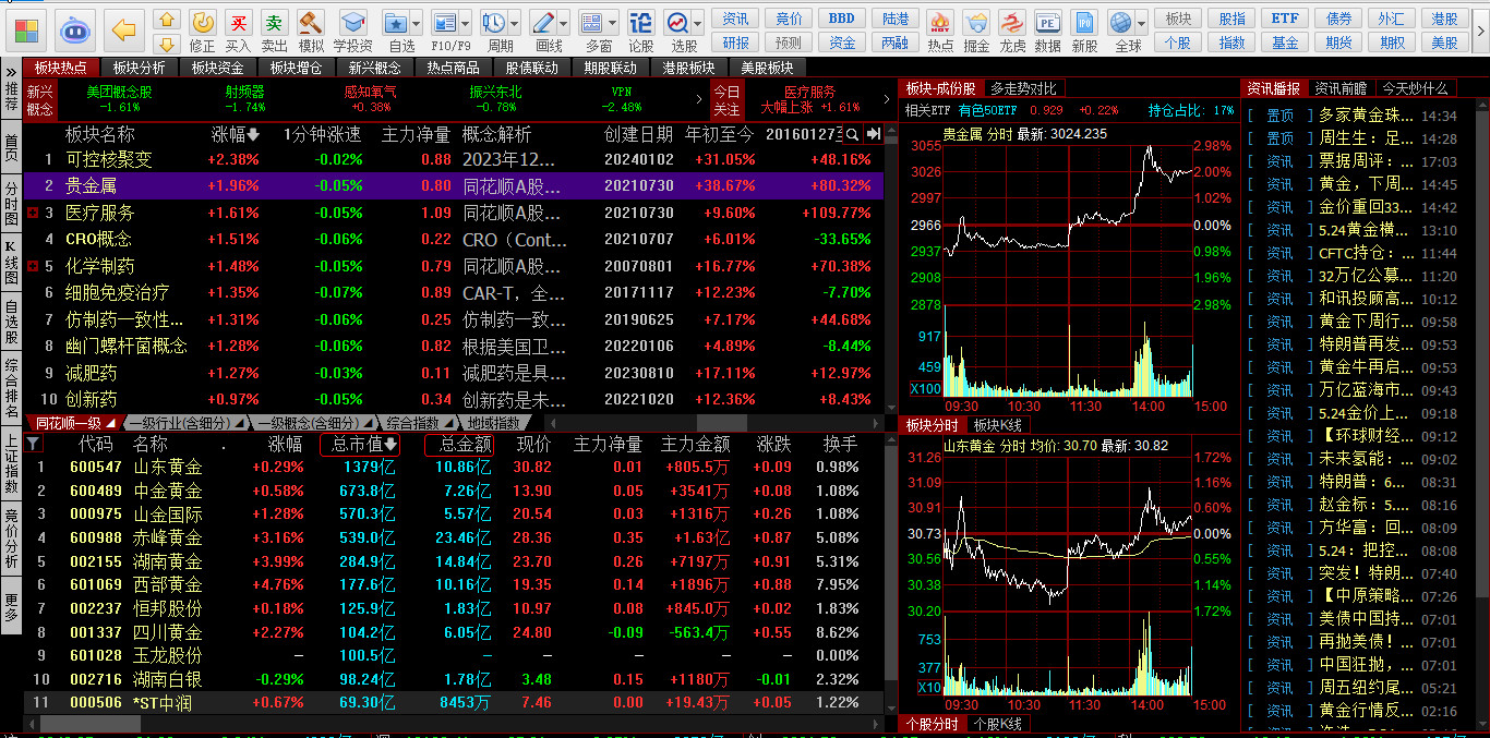 • 左侧:板块涨幅榜(监测中军股动向)
