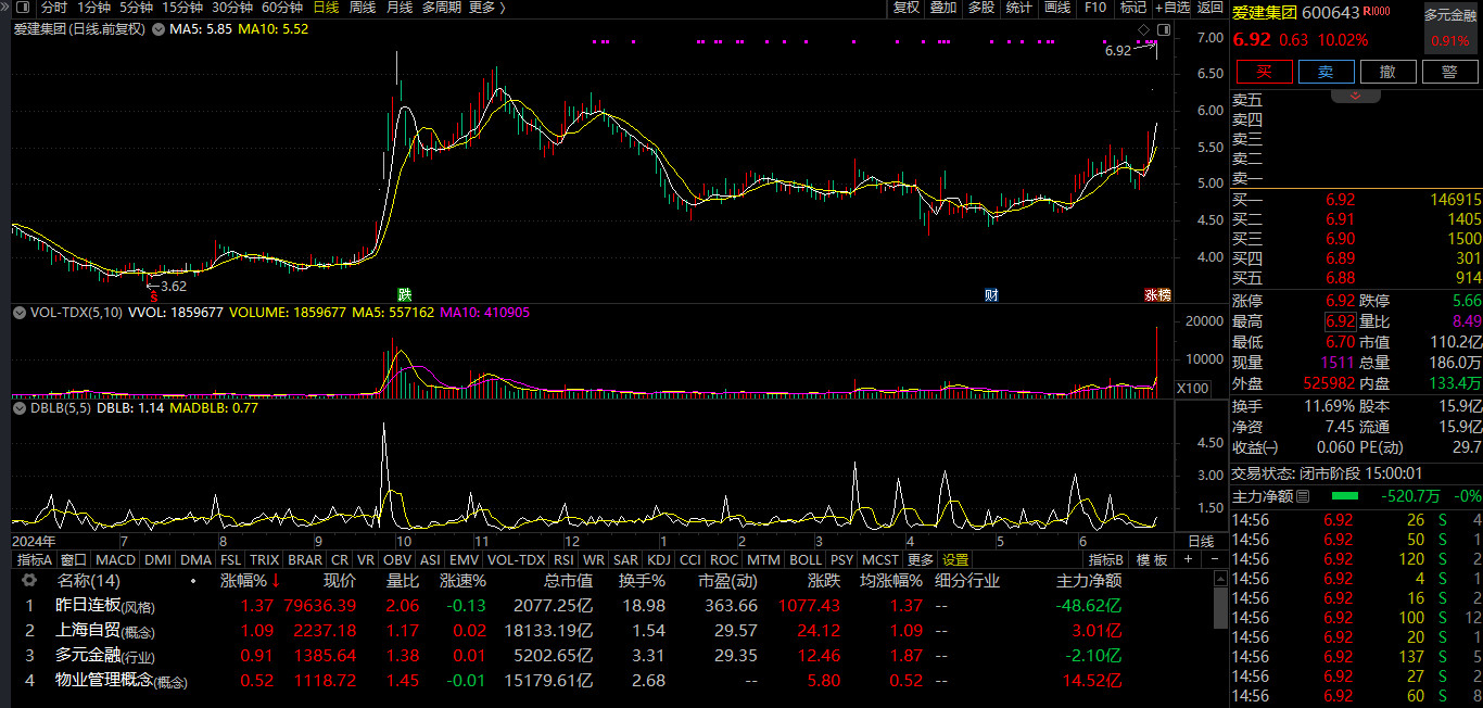 爱建集团(今天放量破9.24新高,以及2022年年初的新高,当天成交10亿,解放了这么多的套牢盘,不可能下周一就走)